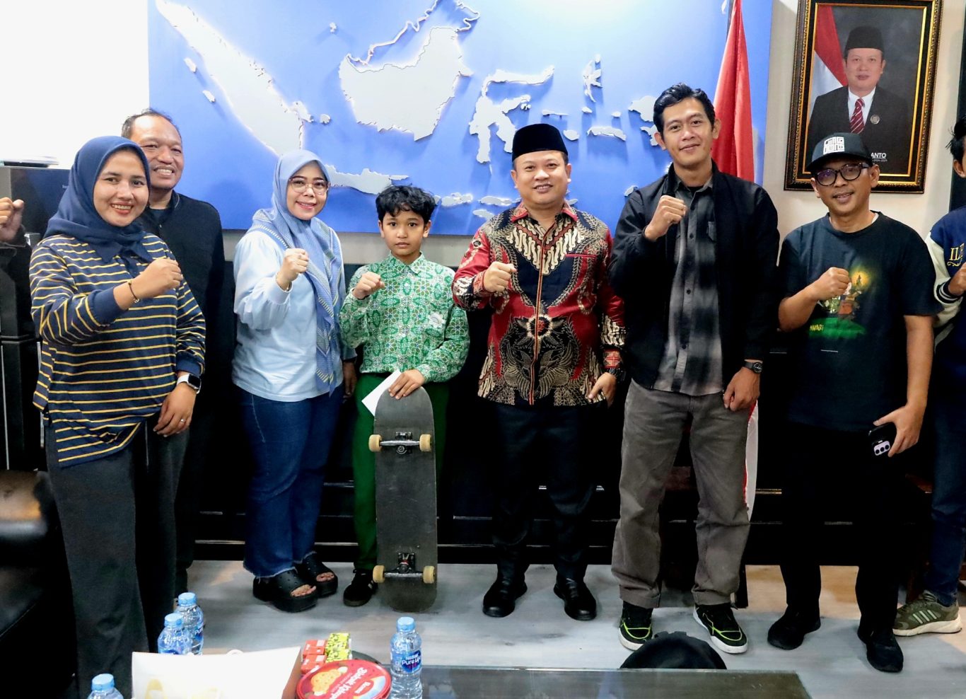 FAKTAMEDIA.id – Wakil Ketua Dewan Perwakilan Rakyat Daerah (DPRD) Kota Tangerang Turidi Susanto menerima kunjungan atlet skateboard muda asal Kota Tangerang, Fathian Radhika, di Gedung DPRD Kota Tangerang, Kamis (2/4/2026). Fatian dijadwalkan akan mengikuti ajang Asian Skateboarding Championships 2026 yang berlangsung di China pada 7 hingga 12 April 2026.